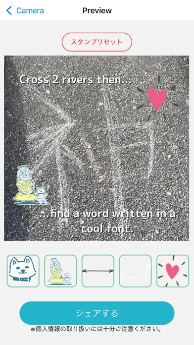 Share photos taken during your walk on social media, adorned with revelations and stamps. You can also view photos from fellow walkers nationwide using hashtags.