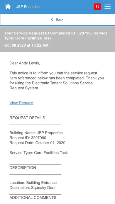 Electronic Tenant® Solutions' Tenant Center app allows building occupants the ability to: