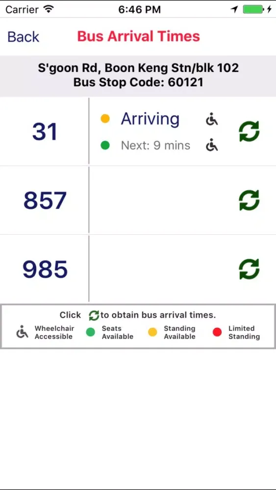 -‘Bus Arrival Times’ provides users with the estimated arrival times of the next two buses of the selected bus service.