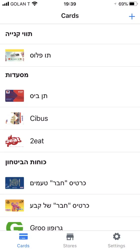 האפליקציה תומכת בכרטיסי: