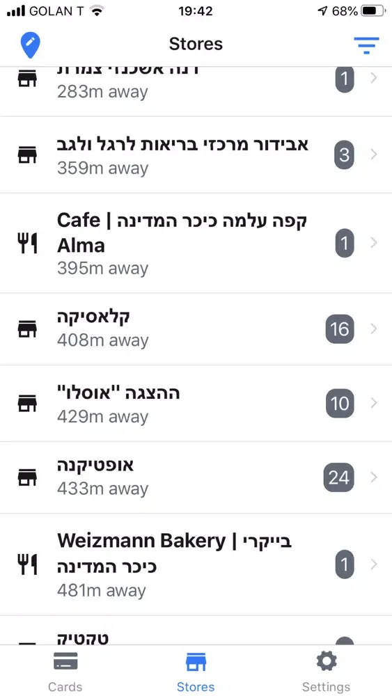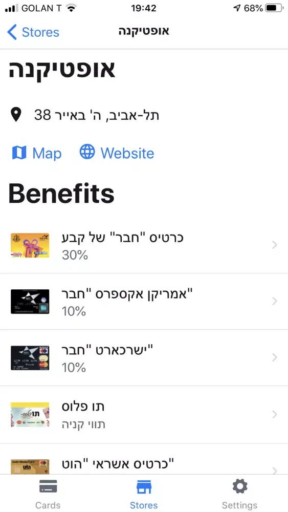 האפליקציה מראה לנו את ההנחות הקיימות במקום הזה עבור כל הכרטיסים במערכת.