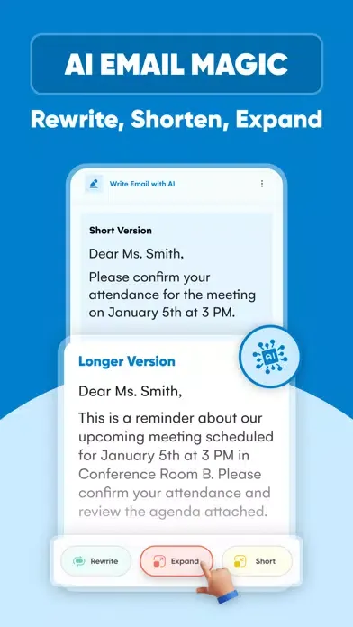 1. Smart Suggestions: Let our AI analyze your writing style and provide personalized suggestions to enhance your emails. From tone adjustments to content recommendations, we've got you covered.