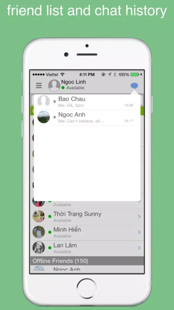- App can chat directly with official Goggle Messenger (Gmail web chat, Gtalk, Hangouts, ..) but to make call, both side must install eMailChat