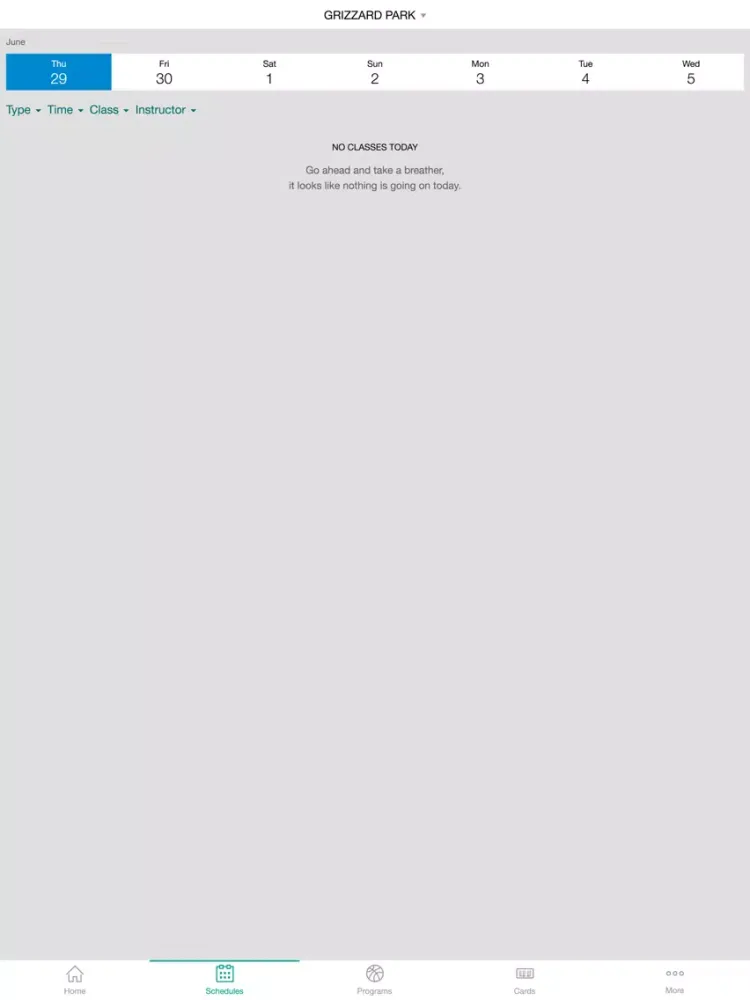 • Easily view schedules for each day and filter for the types of classes that you like.
