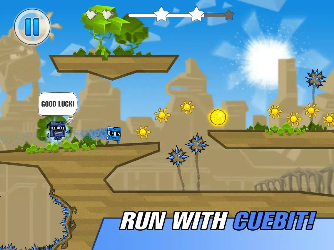 Run with Cuebit to save the Magic Animals of Harmony from extinction! Transform your shapes and dodge obstacles in an admirable and unique universe! New planets, various opponents and dozens of amazing traps await you! Complete all the levels, free your friends and destroy enemy minions to gather all Magic Animals and find them a match. Restore the Harmony of the galaxy ruined by the Lord of Chaos!
