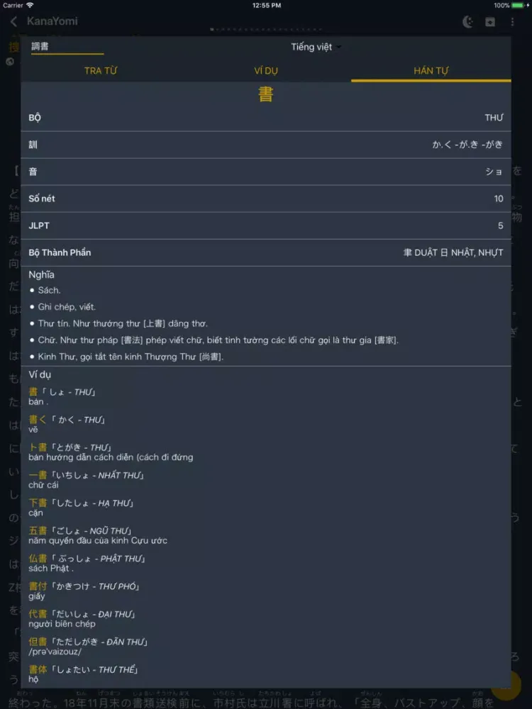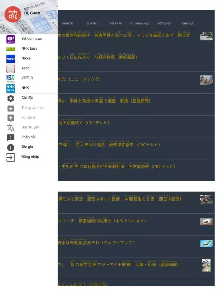 - Tap or select word to search quick dictionary in Japanese, English, Vietnamese, Chinese, Korean.