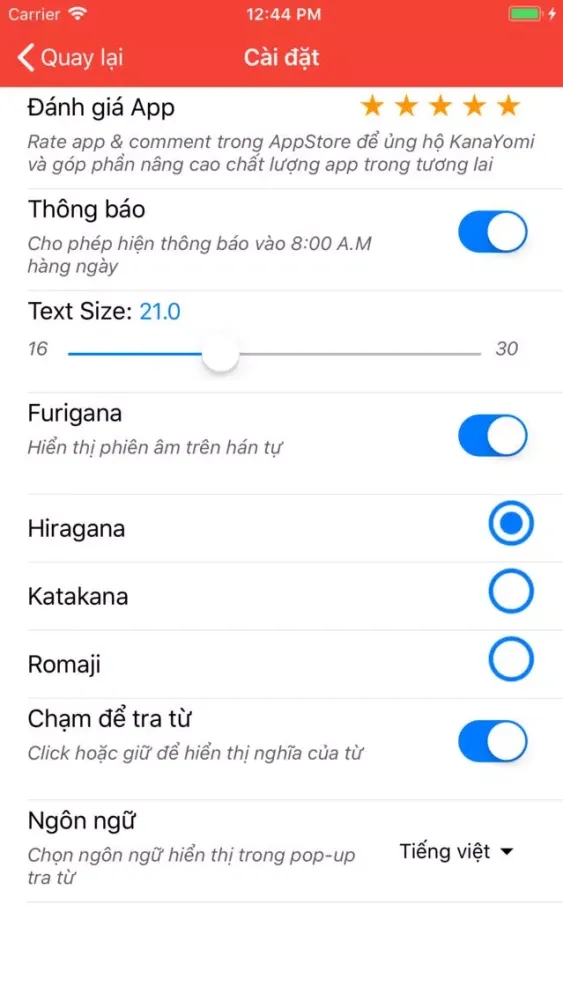 - Show pronunciation key(Hiragana, Katakana, Romaji) above Kanji.
