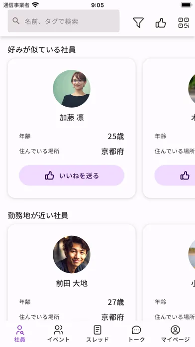 同僚の思わぬ一面を発見したり、マッチングした人の趣味を詳しく知ることができます。