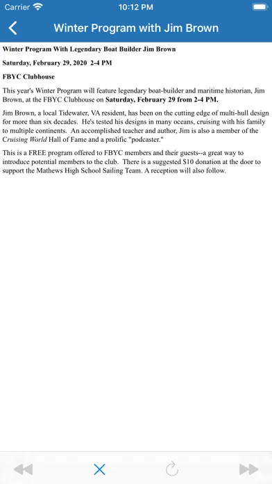 The FBYC mobile application helps connect sailors by providing useful information about club events, weather, and sailing programs on your iPhone and iPad. If you are a member of the club, use your existing FBYC user name and password to login and access the member directory from your device.