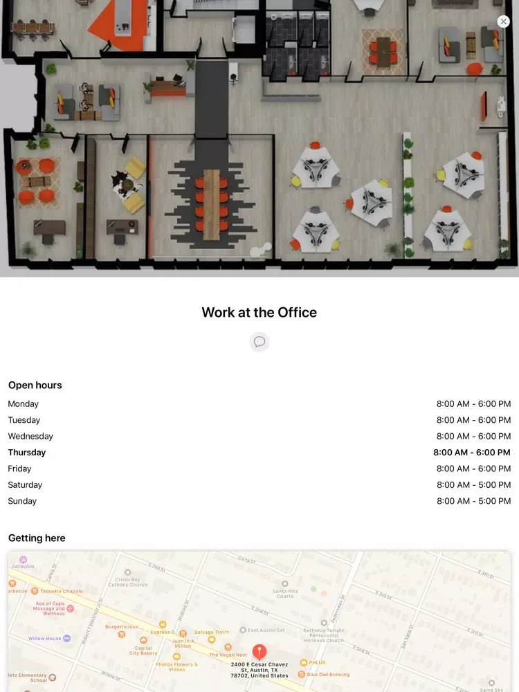 The OpenWork App is a flexible working tool that helps employees manage their work days by enabling them to choose where they work. The tool facilitates scheduling, booking, and checking in at home, at the office, or at a local coworking space. The app also supports community interaction through a community feed and direct messaging. The app is for the business OpenWork Agency, a workplace strategy and change management consultancy focused on helping companies design more human-centered organizations.