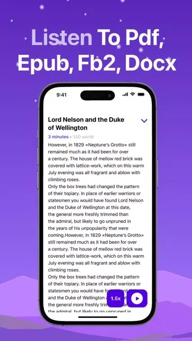 Supports PDF, EPUB, docx and fb2 files. The formatting of the document is preserved.