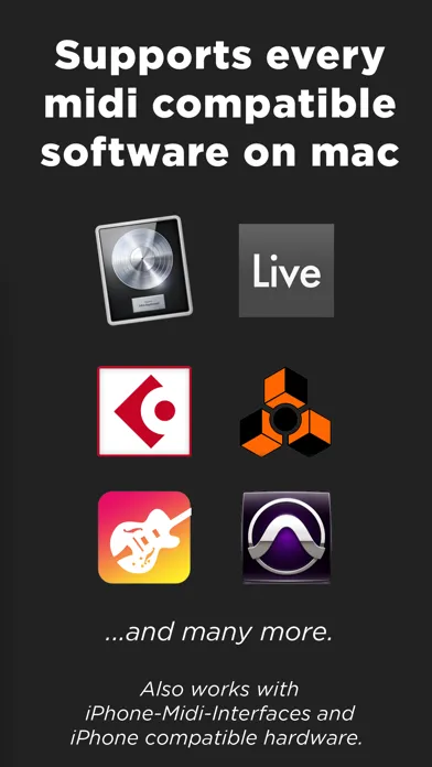 • Also works with external hardware (e.g. synths,...) that supports Apple (CoreMidi)
