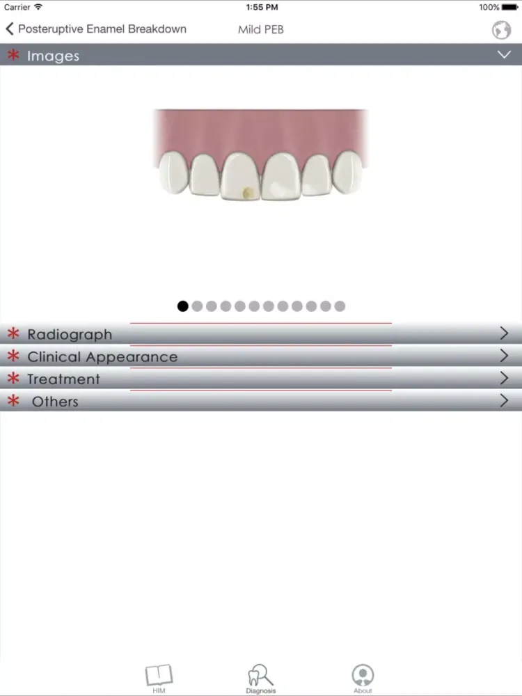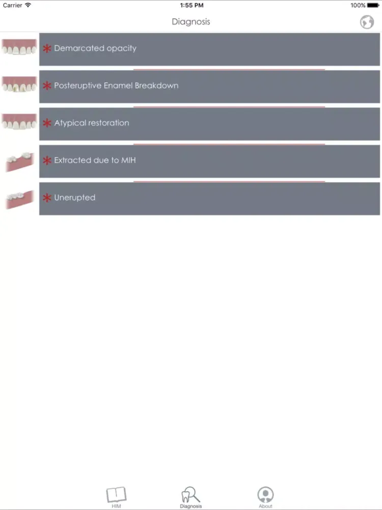 The MIH Molar app, created by Universidad de Chile-Faculty of Dentistry, is an interactive, educational app about Molar Incisor Hypomineralization (MIH). This app allows dentists, dentistry students, patients and other health related professionals to learn about MIH. It provides information regarding its ethiology, prevalence, clinical appearance and treatment. In addition, it includes real clinical images of teeth affected with MIH.