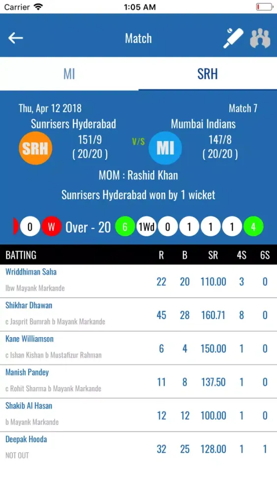 Application provide you every match live score every time updates. Match score, runs, wickets, Point Table.