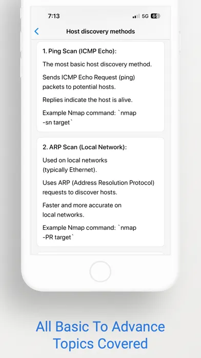 Central to your journey with Nmap Guide is the exploration of Nmap, the renowned open-source network scanning tool. The app offers intuitive tutorials to guide you through Nmap's complexities, from its basic installation to mastering its advanced functionalities. Additionally, you'll gain proficiency in utilizing various tools employed by cybersecurity professionals, enhancing your capabilities in network exploration and vulnerability assessment.