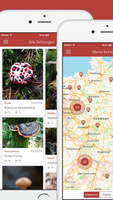 Hobby-Mykologen und App-Benutzer aus aller Welt helfen Ihnen bei der Pilzbestimmung. Reichen Sie Fotos von Ihrem Pilz-Fundus ein und bekommen Sie in Kürze erste Vorschläge.