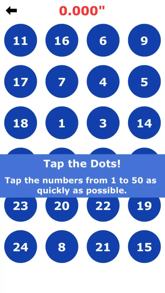 50 Dots: Tap 50 dots as quickly as possible.