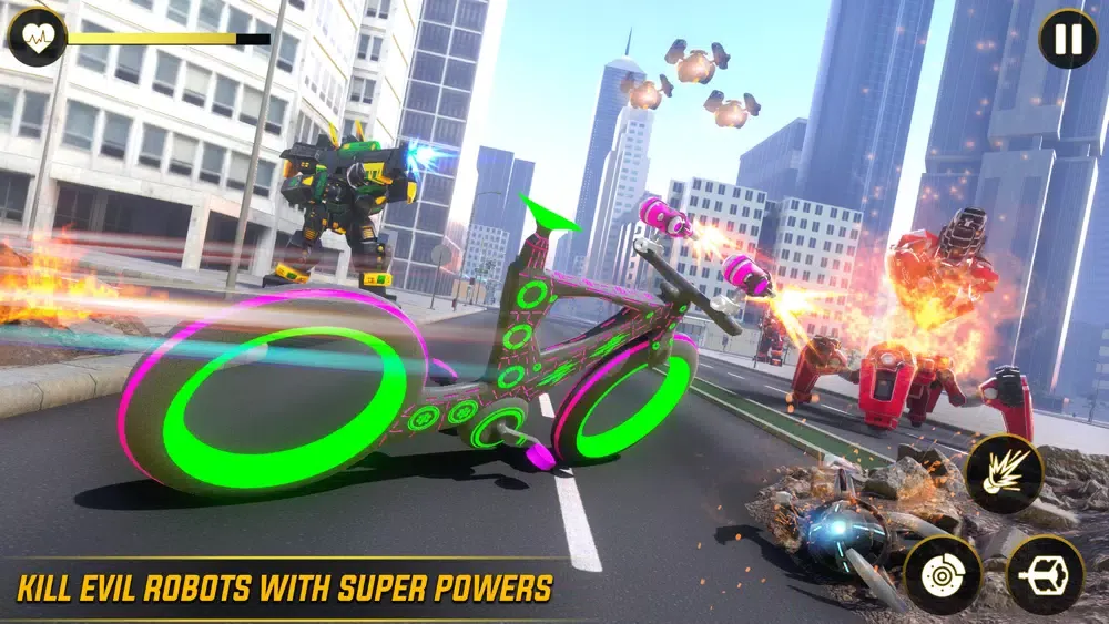 Get ready for an innovative transformation idea of the BMX Cycle Robot Game presented by Brilliant Gamez. Enjoy gameplay of this robot transforming games and save the world from enemies attacks. Be the best robot hero in this BMX Cycle Robot Shooting Game and clear the city from bad enemies robot. Explore your skills in multi-robot transformation games and incorporate the best features of cycle robot games.