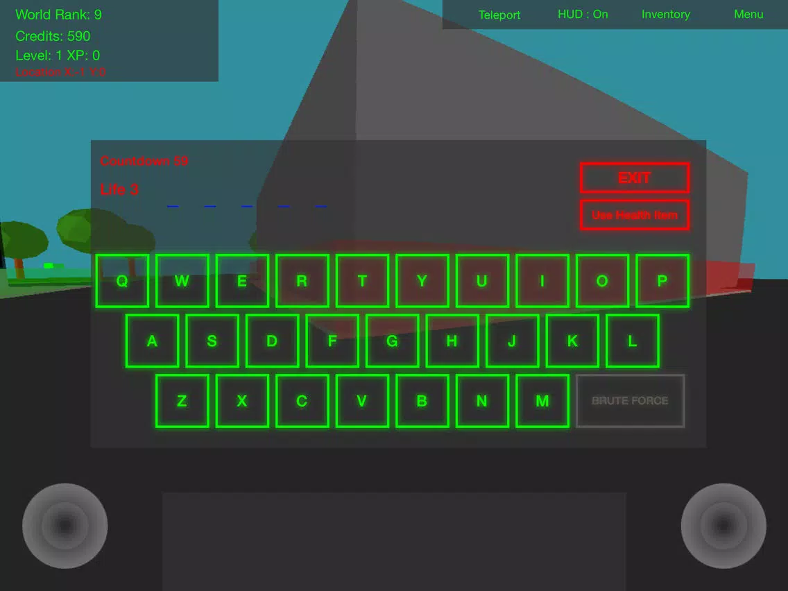 - Hack buildings via a hangman style game to gain access, credits and rare items.