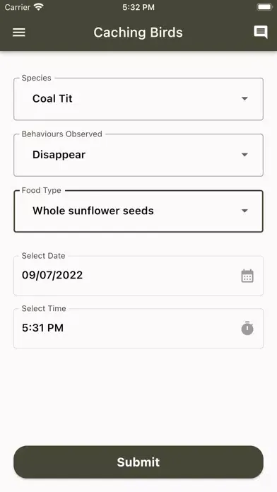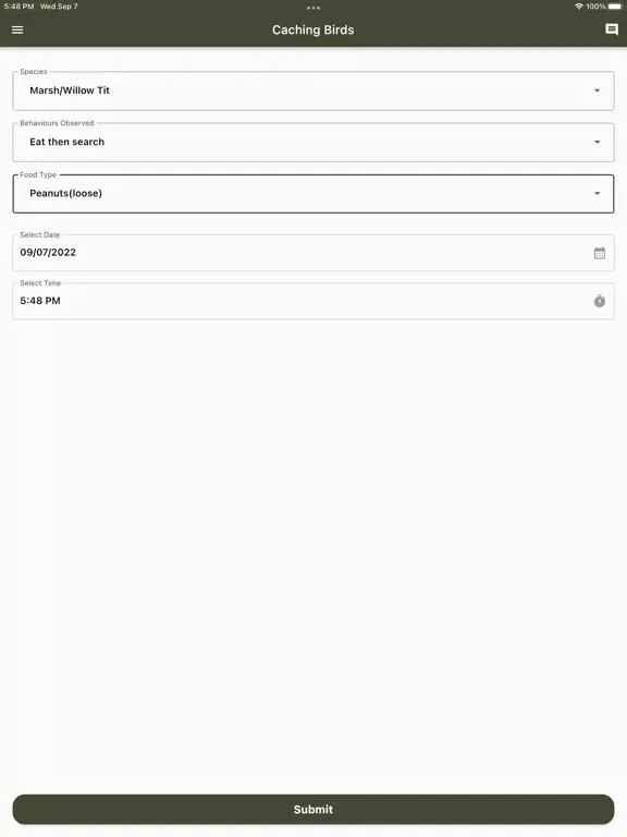 As part of our volunteer team, using the caching birds app you will be observing bird behaviour. We’d like to know what species visit the feeder(s) in your garden, what they do with the food they find, what food they are attracted by and when you observe them. These data can be easily recorded using the Caching birds app and submitted for further study to understand food hoarding behaviour in these bird species.