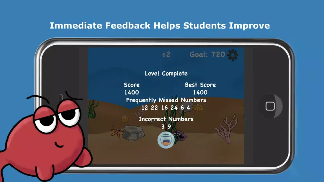 No more endless drills or boring flashcards! Players swipe floating bubbles to divide them evenly by a given number. Swipe enough correct numbers and progress to the next level. Too many mistakes and students will have to try again, promoting automatic recall of multiplication facts.