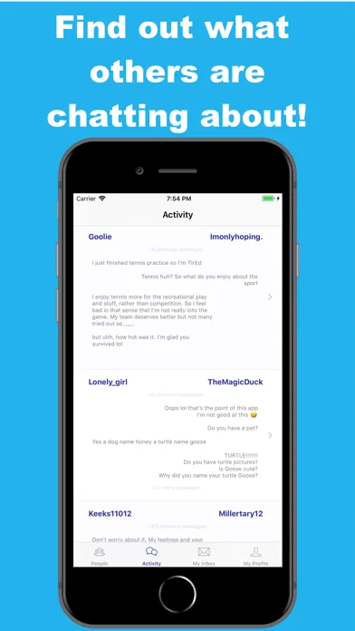 So not only can you meet new people, you can actually view other people's conversations first. In other words you can make sure they're actually interesting before saying "hi"!