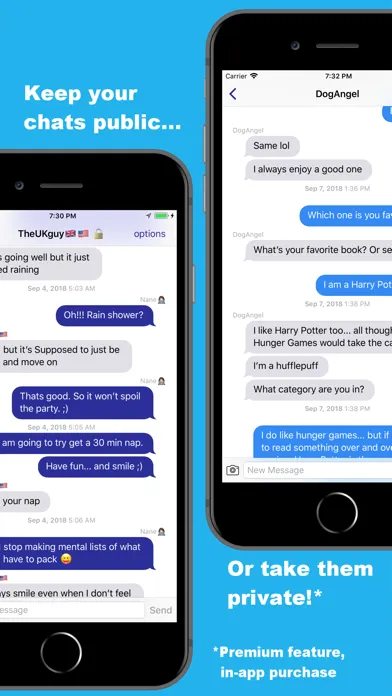 With Bored Chat Premium, you will be able to take all your chats private. Chat about what you'd like to without the world snooping on your every message!
