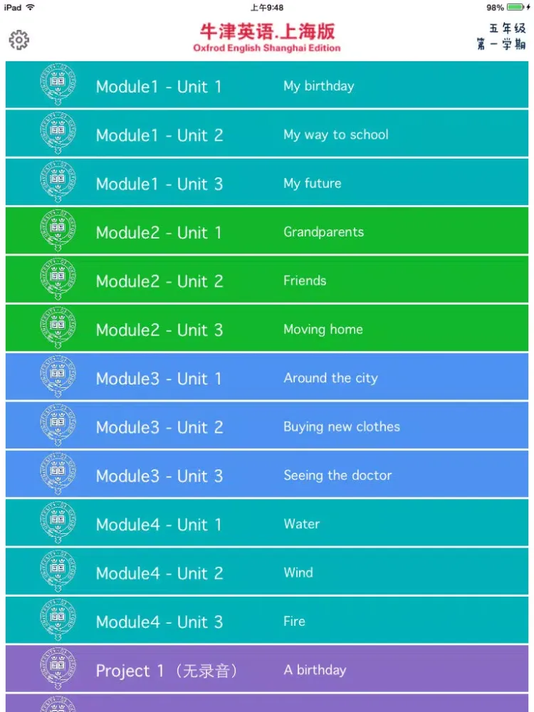 《牛津英语上海版》五年级(第一学期) iPad سکرین شاٹس