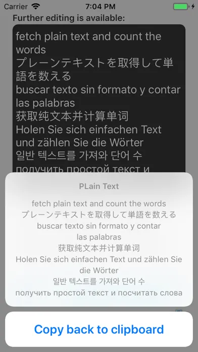 3. touch the button "Copy back to clipboard"