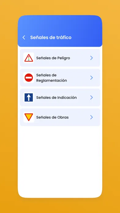 3) Señales de tráfico: ¿Te sabes cuál es la señal que indica prioridad sobre otro vehículo en la misma calzada? Con nuestra app podrás aprenderte todas las señales de tráfico necesarias para aprobar el teórico y sacarte el carné de conducir