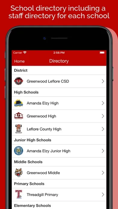 Stay informed of school and district announcements, activities, sports schedules and events at Greenwood Leflore Consolidated School District. Receive important messages from your selected list of schools; monitor district and school activities from social media networks including Facebook. Transfer activities or events directly to your native iOS calendar with a single tap. A school directory allows you to lookup any school within the district and view general or staff member contact information.
