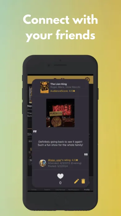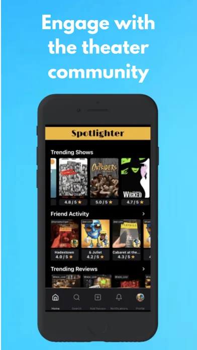 Spotlighter™ is the social network for theater lovers, allowing you to review and keep track of your theater-going experiences. You can also follow along with new trends with your friends! With Spotlighter, the audience takes center stage.™