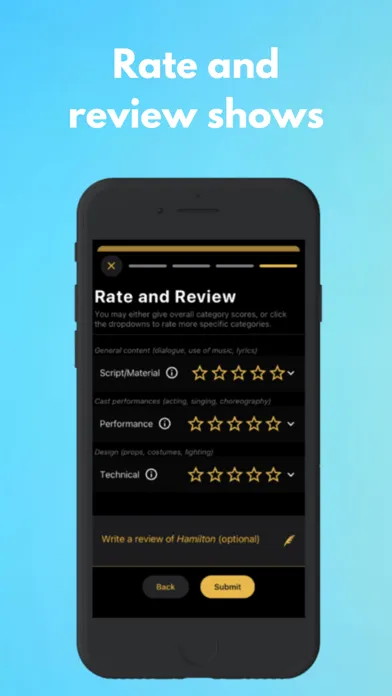 * Browse popular, highly rated, and most anticipated professional productions (plays and musicals)
