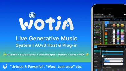 Wotja is a powerful system for on-device generation of Live Generative Music & MIDI. Easily create & play ambient soundscapes, textured drones, text-to-music melodies/arps + so much more. It has a long history, it is actively developed, it delivers great results & it is well loved by many!