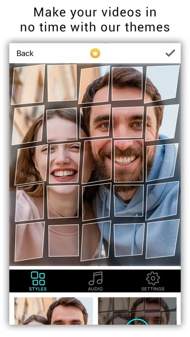 To make your movie, choose any number of photos and view an instant preview in dozens of different styles. Pick your favorite styles and share the results with the world!