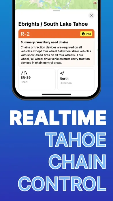 This is your one-stop shop to see live chain control information in the Tahoe region. With data powered by Caltrans, you know whats displayed is always accurate and up to date. With an easy-to-use Dashboard, you'll immediately be able to see the strictest chain control for each road around and in the Tahoe Basin. And with a detailed map, you can see exactly where and what each restriction is.