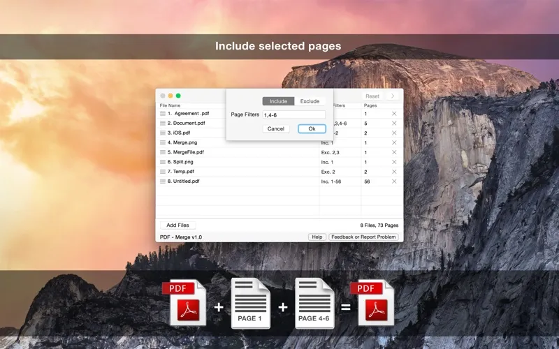 - Include: You can add the page and also set the range for every PDF files to include only those number of pages in exported PDF file
