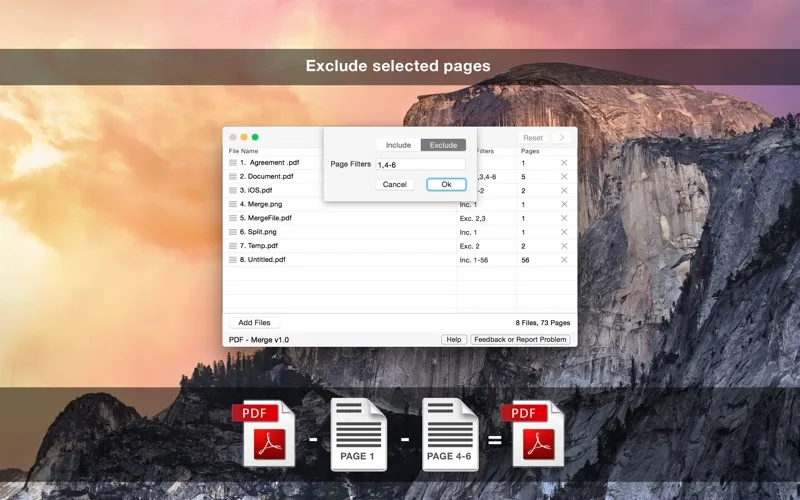 - Exclude: You can add the page and also set the range for every PDF files to exclude those number of pages in exported PDF file