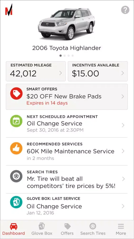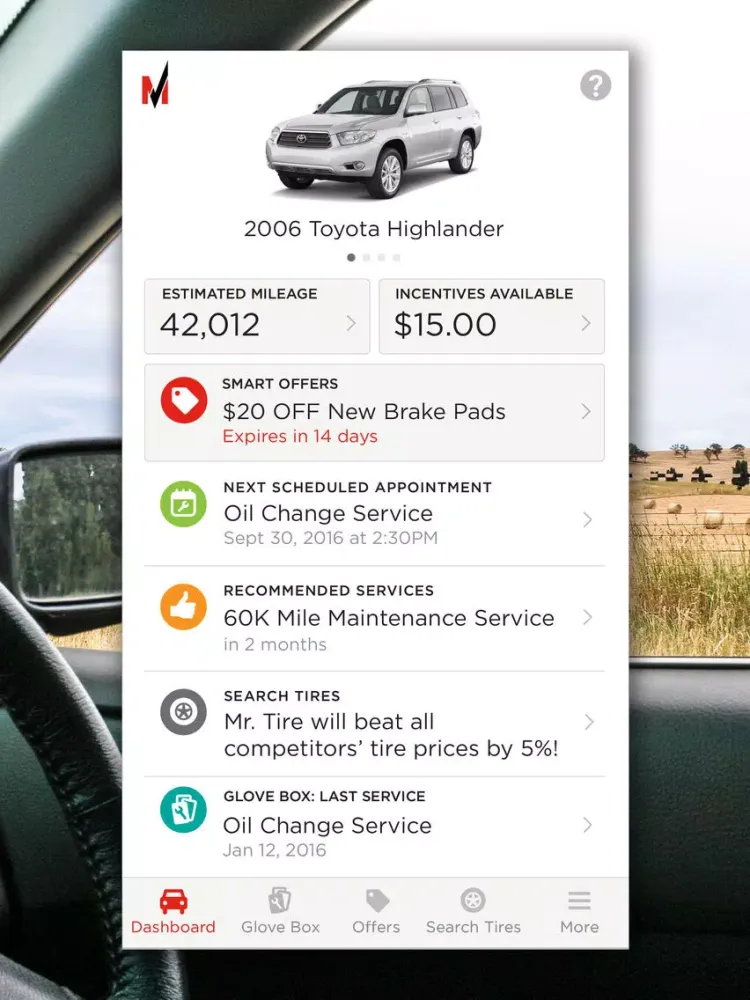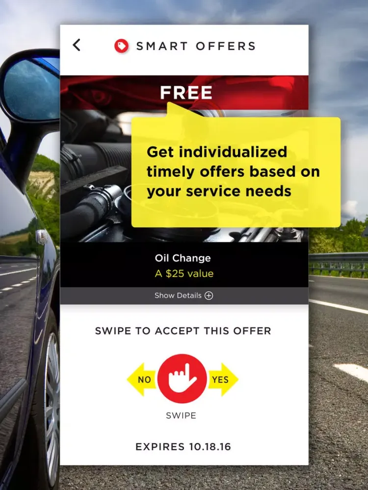 Get individualized Smart Offers, store car maintenance history, and make appointments.