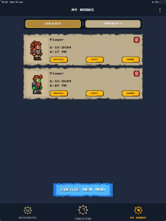 Mods created with this app are fully compatible with Terraria, ensuring a smooth and enjoyable experience. Join the ranks of modders and revolutionize your gameplay with Plug Mod Creator for Terraria. Elevate your adventures, face new challenges, and make game truly your own. Unleash your creativity and transform the world like never before!
