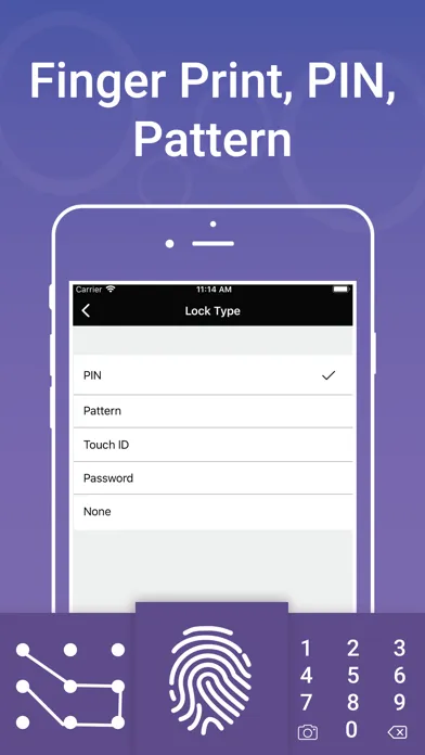 Secure Vault with : 1)Password 2)Pattern 3) PIN 4) Touch ID