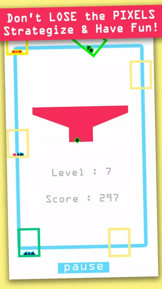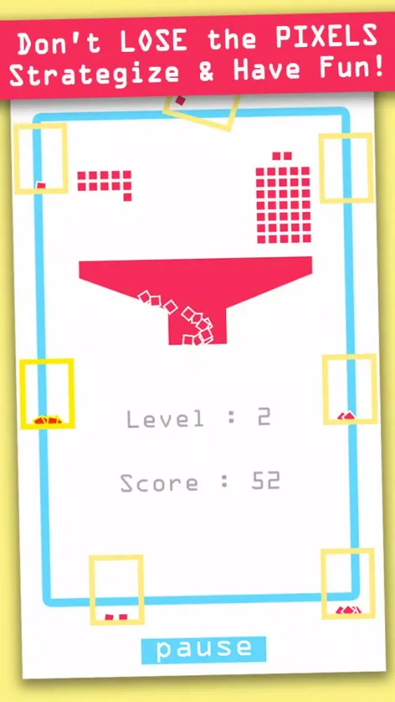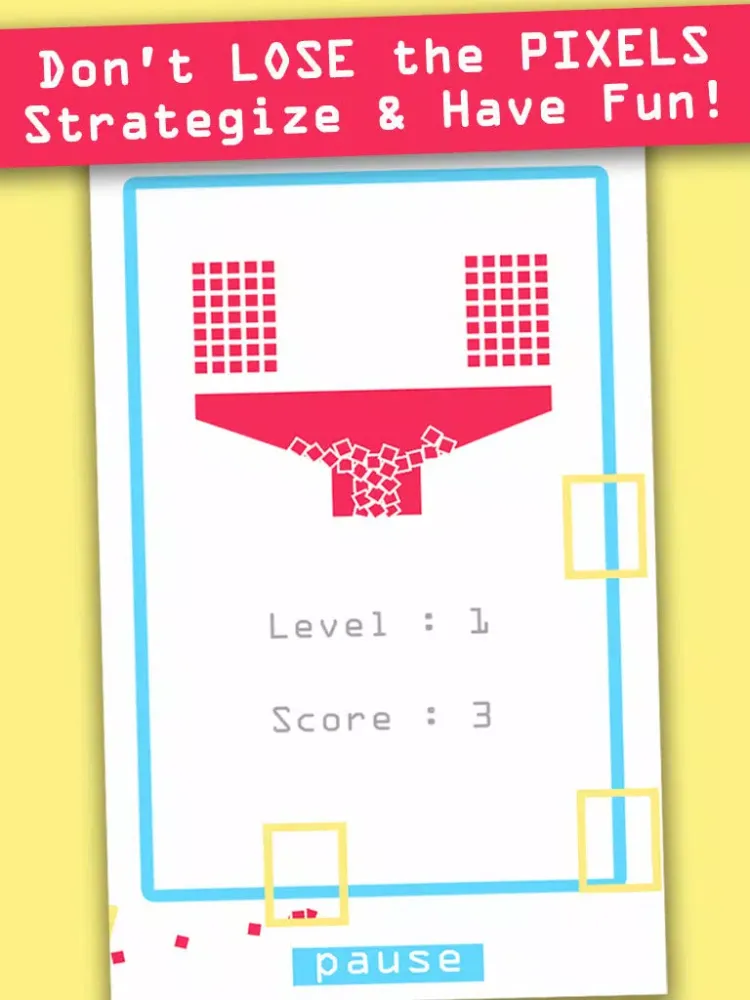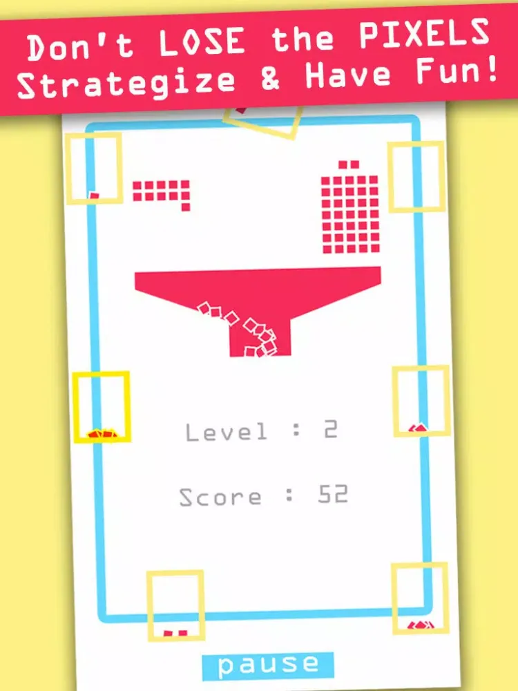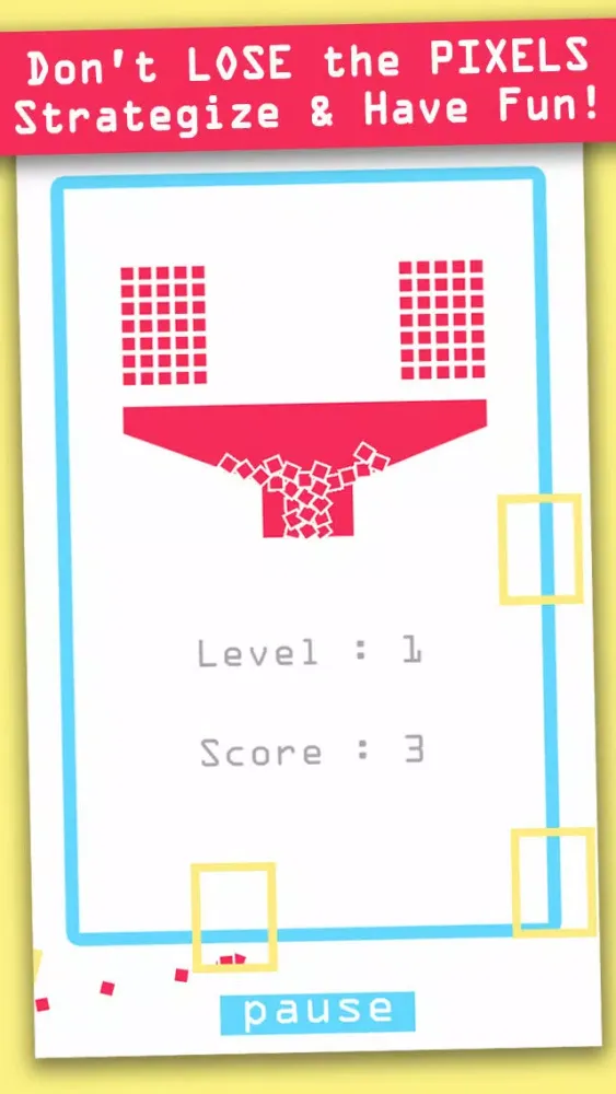 - Tap on screen to let the pixels fall. Your goal is to catch the falling pixels in your boxes. The boxes will return the colorful pixels to the pot. Empty boxes will be discarded. The game ends when you lose all the boxes or pixels. Each level speeds up the movement of the boxes. On higher levels, the boxes will change in color. Catching more pixels in colored boxes gives you a higher score. The longer you remain in the game, the more points you get.