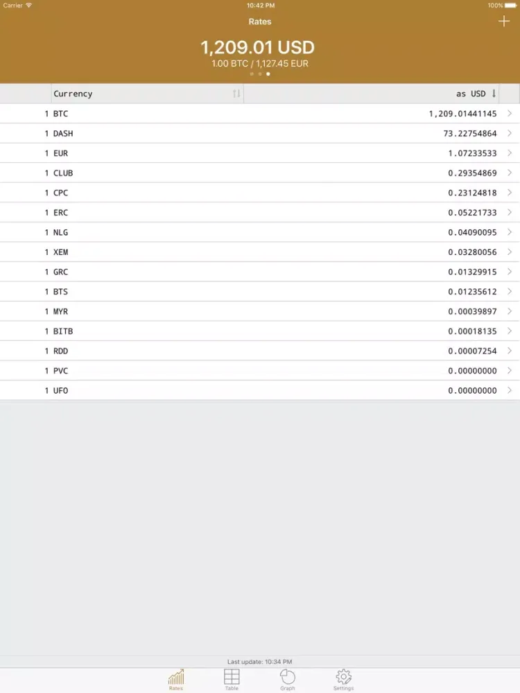 Moreover, all currencies can be converted to any desired reference currency. By default they are converted to bitcoin and your local currency.