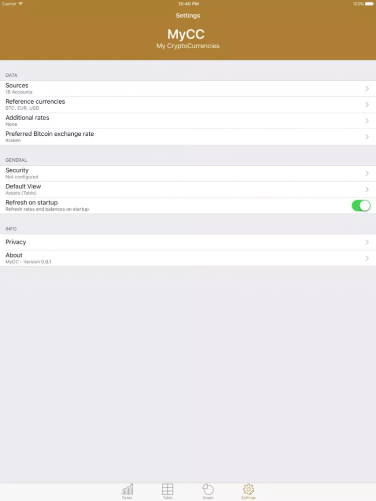 All required access data are stored solely on your local device and are not transferred to our server at any time. Sensitive data (e.g. Bittrex/Poloniex keys) is not shown anywhere in the app after entering. With deleting the source the belonging data is removed from the device.
