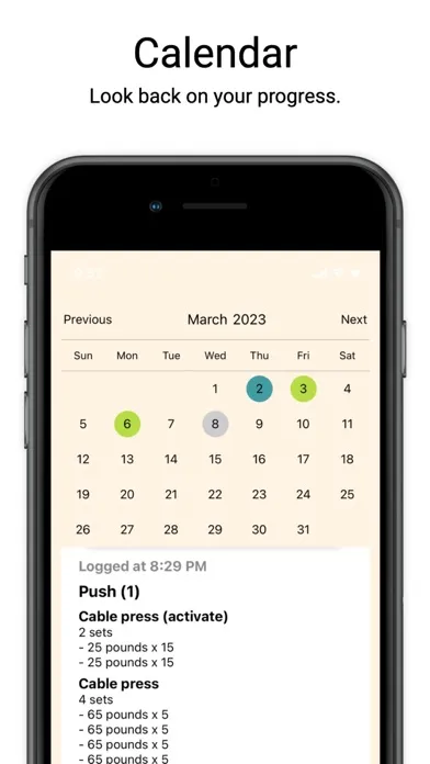 At the end of the routine, all workouts are automatically logged and placed on your calendar so you can look back at what you have accomplished.