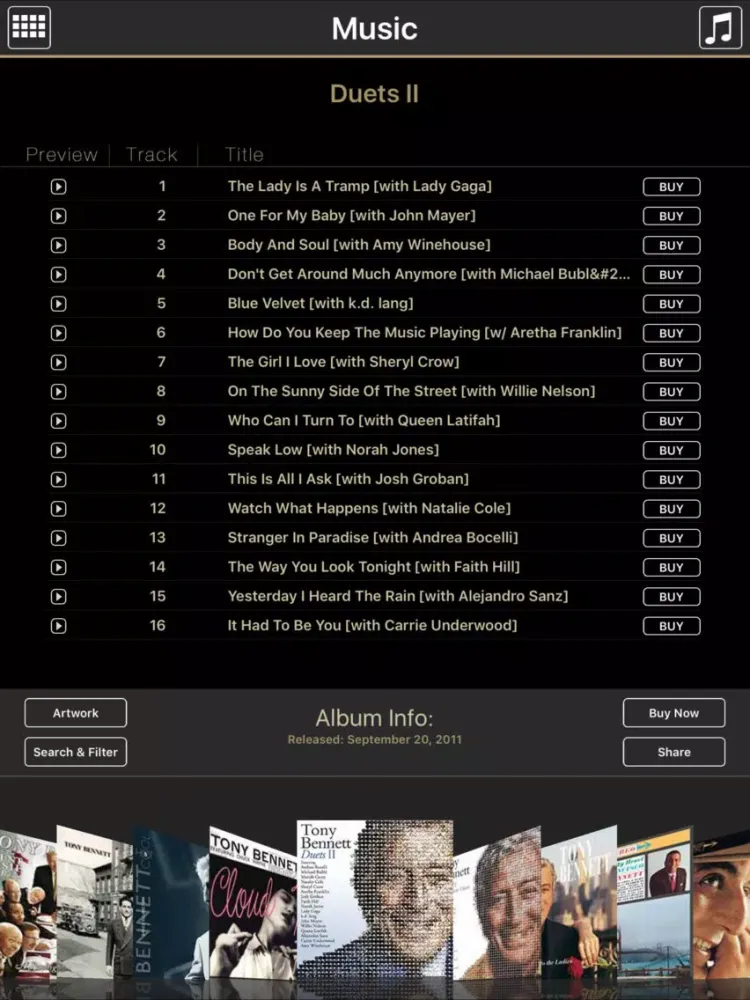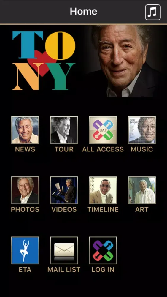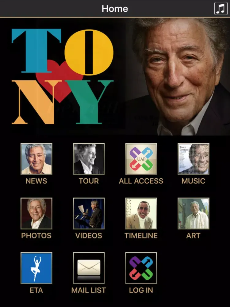 The official app of legendary singer Tony Bennett offers fans a special Ultimate Access Pass to all things Tony Bennett. Features include News, Music, Photos, Videos, Archives, Artwork, Tour Dates, Store and much more.