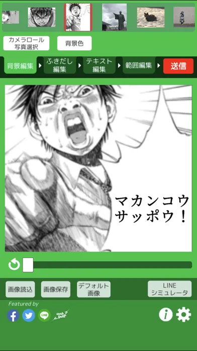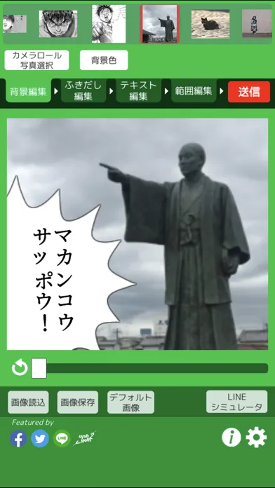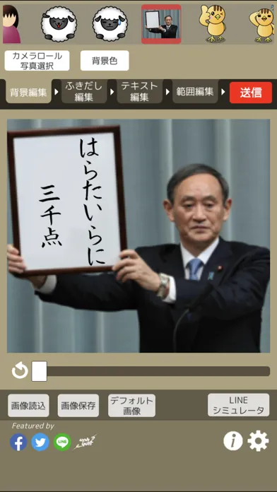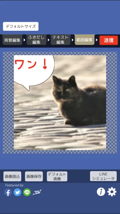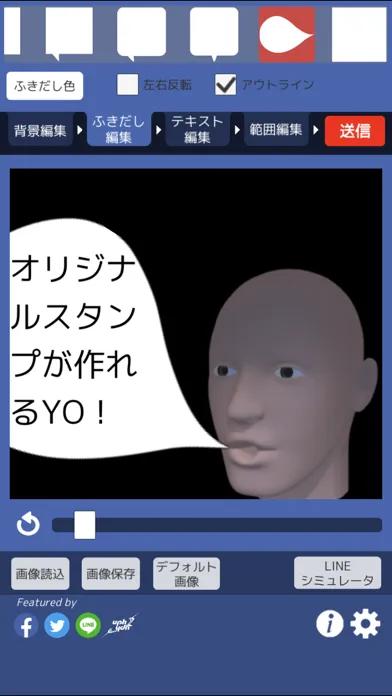 作成したスタンプ画像はLINEへの送信はもちろん、TwitterやFacebookにも投稿するコトができます。