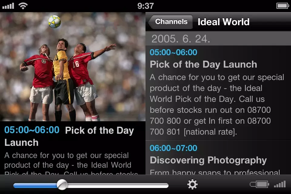 myTV 2GO is an application to view DVB-T digital television on iOS devices. To use this program, you need a TV tuner device called “Hauppauge myTV 2GO", which is directly connected to your iOS device’s dock connector.