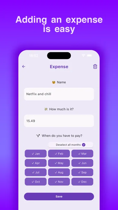 - Effortless Expense Tracking: Just enter the name, amount, and frequency of an expense, and Expenso takes care of the rest. Get an instant, clear summary of your fixed monthly outgoings.