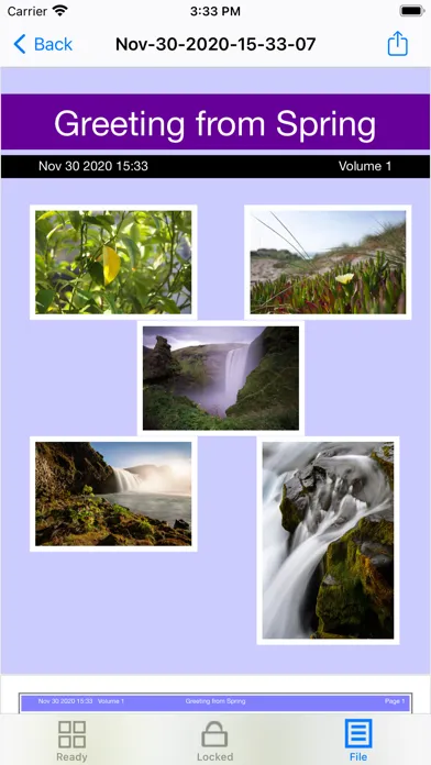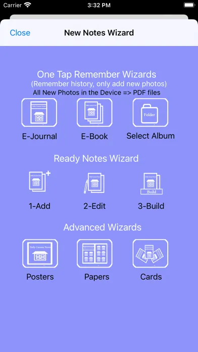 1.In the advanced wizard category, tap the Papers button, then select the photo album and photos, after tap the confirm button, the paper wizard will be displayed. Tap the build button. The photographic paper will be created. The screenshot 4 is the first page of the Photographic Paper.